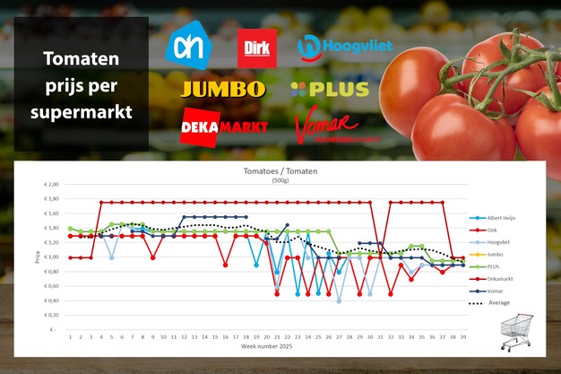 Prijsdata zijn afkomstig van Supermarktscanner.nl en gebaseerd op de online prijzen in de webwinkels van Albert Heijn, Jumbo, Plus, DekaMarkt, Dirk en Hoogvliet. De prijs is een gemiddelde, inclusief de promoties. In deze prijsvergelijking zijn herkomst en kwaliteit niet meegenomen. De meeste supermarkten vermelden deze gegevens niet op hun website, Hoogvliet en Jumbo vermelden het land van herkomst. Mogelijk worden in de bovenstaande prijsvergelijking onrijpe avocado's met rijpe vergeleken en Spaanse komkommers met Hollandse.
