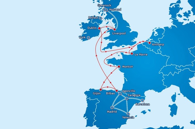 Deze nieuwe structuur biedt een directe wekelijkse verbinding van Bilbao en Gijón naar zowel Liverpool als Dublin. Schepen vertrekken op vrijdag vanuit Bilbao en komen op maandag aan in Liverpool en op woensdag in Dublin. De dienst fungeert als een alternatief voor het vervoer over land van Spanje naar het VK en Ierland.