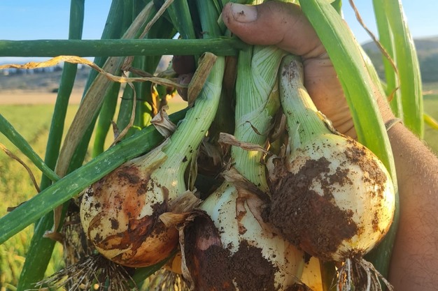 "Het afgelopen uienseizoen was het beste dat ik ooit heb meegemaakt," vertelt Yannis, een ervaren uienhandelaar en mede-eigenaar van Agrodiktyo, een teelt- en verpakkingsbedrijf in Thebe, Griekenland. "Van halverwege juli tot de eerste week van september lagen de EXW-prijzen rond 0,40 euro per kilo, waarbij lichtgele uien iets meer opbrachten. Een dergelijke prijstrend hebben we nog nooit eerder meegemaakt, en zelfs gezien de omstandigheden hadden we dit niet voorzien. In de belangrijkste Griekse teeltregio Thebe leverde de nazomeroogst wel 50-60 ton per hectare op. Slechts een klein aantal teeltbedrijven behaalde lagere opbrengsten, maar zelfs die waren nog altijd rond de 40 ton. We ontvangen uien in alle maten."