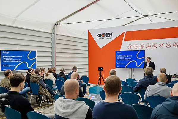 In de productiehallen en de showroom in Kehl presenteerde Kronen samen met zijn partners – waaronder iWEIGH, ProMinent, sterilAir, GKS Packaging en Citrosol – op zo'n 3200 m² een breed spectrum aan zowel oudere beproefde als nieuwe technologieën. Bijzonder highlight waren de zeer praktijkgerichte live demonstraties van de machines.
