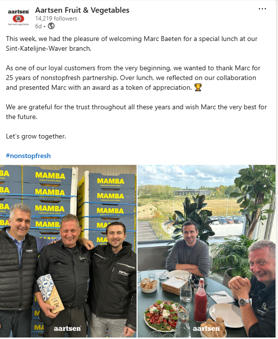 Leverancier Aartsen bedankte het bedrijf voor een "25 years nonstopfresh":