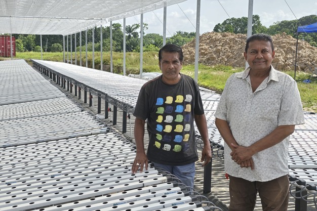 "Het is nu dat we de handen uit de mouwen moeten steken", zeggen Henk Kasi, landeigenaar en ondernemer, en Rakesh Jhagroe, teelttechnicus en gepassioneerd pionier in de tuinbouw. Samen zetten ze onder de naam Agro Nature Su NV de schouders onder een ambitieus project: een moderne kas van 4.000 m² in Lelydorp, waarin binnenkort elke maand tot wel 60.000 kroppen sla zullen worden geoogst. De timing is geen toeval: Suriname verwacht vanaf 2028 een toestroom van duizenden werknemers in de olie- en gasindustrie. Die zullen uiteraard ook moeten eten, bij voorkeur gezond, vers en lokaal.