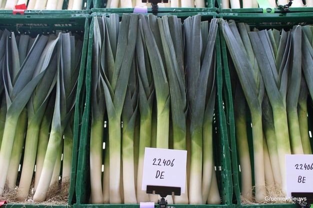 Een ander nieuw ras in prei is Rapton F1. "Dit is ons meest uniforme preiras op de markt", zegt Rens Muusers, Regional Crop Lead voor prei, wortel en knolselderij voor de regio EMEA (Europa, het Midden-Oosten en Afrika) als hij naast een opstelling staat waarin Nunton, Freeton en Rapton naast elkaar te zien zijn.