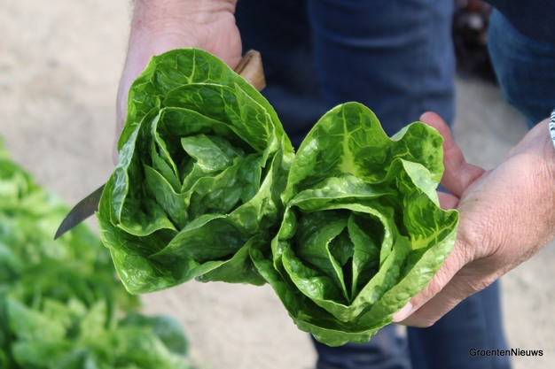 NUN 00402 LTL is een nieuw interessant zomerras, vertelt hij als hij verder loopt en nog een ijsbergslaras aanwijst. "Het ras is sterk tegen rand en schot, snel te oogsten, bolvast en past op zowel lichte als zwaardere grondsoorten."