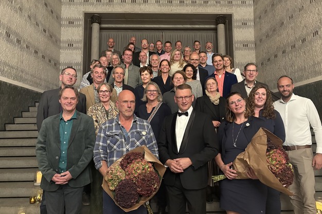 © Provincie GelderlandAlle genomineerden, vooraan Waarde-Ringwinnaar Jeroen Robbers, gedeputeerde Harold Zoet en Waarde-Ringwinnares Marga Kroezen.