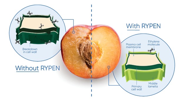 "Ethyleen wordt vaak als probleemstof gezien, maar kan ook nuttig zijn," vertelt Tristan. "Zie ethyleen als de dirigent die diverse biochemische processen aanstuurt, bijvoorbeeld om smaak te verbeteren. Blokkering verhindert goede rijping. Wie heeft niet wel eens een perzik gekocht die nooit rijp werd? Onze technologie zorgt ervoor dat fruit rijper geplukt wordt en op natuurlijke wijze zijn smaak en kwaliteit behoudt op weg naar de markt. Een gecontroleerde ethyleenblootstelling helpt ook ziektebestrijding, waardoor productverliezen afnemen."
