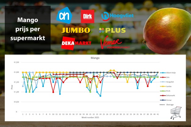 Weinig ontwikkelingen in mango behalve dat de twee weken lopende aanbieding bij Albert Heijn ten einde is. De prijs per stuk is terug naar 1,99 euro. Gemiddeld komt de prijs uit op 1,90 euro.