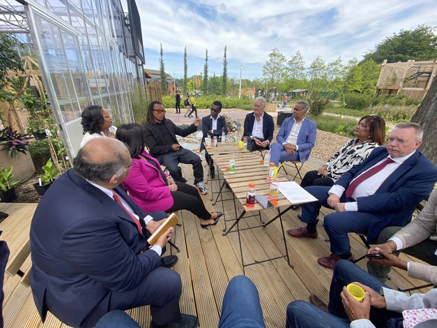 © Jaguar The Fresh CompanyMet een groep buiten aan tafel (ook op de Floriade) zie je Edgar Davids (sociaal betrokken bij Suriname met onder meer voetbalprojecten)
