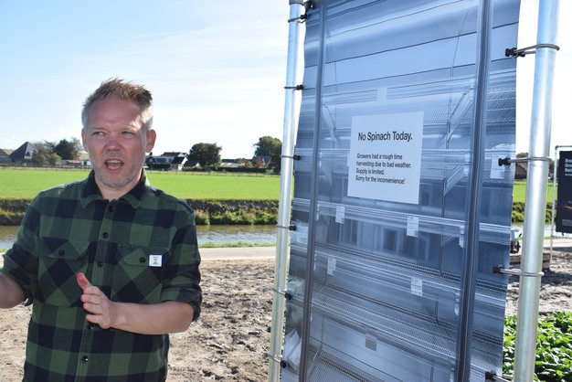 © Marjet Lubbers-Bruijnse | AGF.nlJacco Kaarsemaker van KWS voor een poster met een lege koeling waar spinazie in hoort