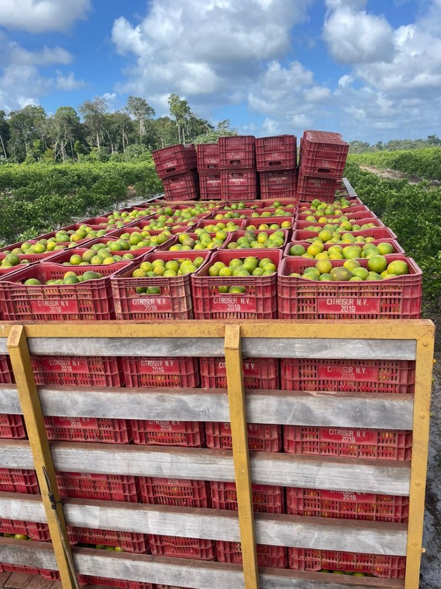 Vijftien jaar terug werd een stuk land, dat door de staat uitgegeven was voor landbouw, beplant met sinaasappelbomen van de Pera Rio variëteit, een Braziliaanse perssinaasappel met een sappercentage van 53%. "Om niet opnieuw het warm water te hoeven uitvinden, is er van meet af gekozen om het Noord-Braziliaanse teeltmodel te kopiëren. Zonuren, bodemgesteldheid, regenval, alles komt er overeen met Suriname." En net als in het noorden van Brazilië kleuren de sinaasappelen niet oranje, want daar is een temperatuurverschil van minstens 14 graden tussen dag en nacht voor nodig. "Maar smaken doen ze net zo goed."