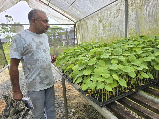 Ook voor het substraat is de beschikbaarheid van materiaal een uitdaging. Radj importeert potgrond. "Ik wil liever speciale zaai- en stekpotgrond, maar dat is hier niet te krijgen. Alles wat nu binnenkomt, is meer bedoeld voor grotere planten. Soms zie je bij het openen van de zak schimmels, wit of bruin. Dat vind ik niet goed. Daarom blijf ik zoeken naar betere alternatieven." Hij experimenteerde ook met cocopeat en steenwol. "In cocopeat en steenwol zitten weinig meststoffen. Je moet steeds extra bijbemesten. Het kan wel, maar kost meer werk."