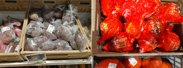 © Marjet Lubbers-Bruijnse | AGF.nlPaarse zoete aardappel, opvallend verpakte pomelo