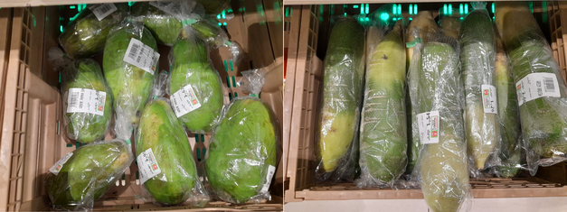 Tijdens het bezoek aan het filiaal in Amsterdam-Noord waren de AGF-schappen nog niet helemaal bijgevuld, maar wat er lag, bood al genoeg verrassingen. Een van de deelnemers vertelde: "Een klant vroeg me laatst om verse zwarte peper. Hij beschreef precies hoe het eruitzag, maar ik wist eerlijk gezegd niet wat hij bedoelde. Tot ik hier in de koeling precies die verse peper zag liggen. Dát bedoelde die klant dus! En hij had het nog goed omschreven ook."