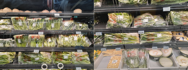 © Marjet Lubbers-Bruijnse | AGF.nlPaksoi is een groot product, de koeling ligt vol met verschillende soorten 'choi', linksonder gepelde knoflook en rechts wintermeloen