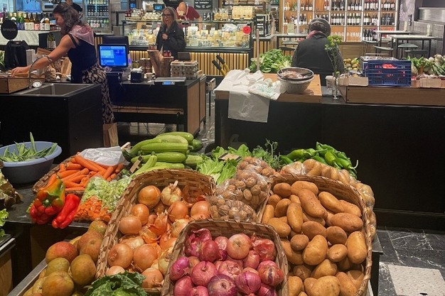 "Het is geen traditionele markthal vol kramen, maar een moderne, tweelaagse foodmarkt waar design, ambacht en gastronomie samenkomen," vertelt Marcel. "En precies in het midden bevindt zich de groente- en fruitafdeling, het kleurrijke hart van de markt."