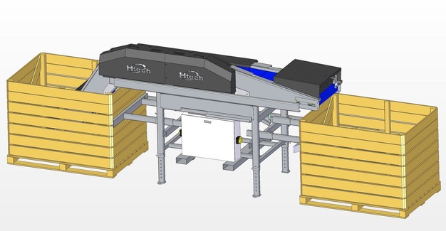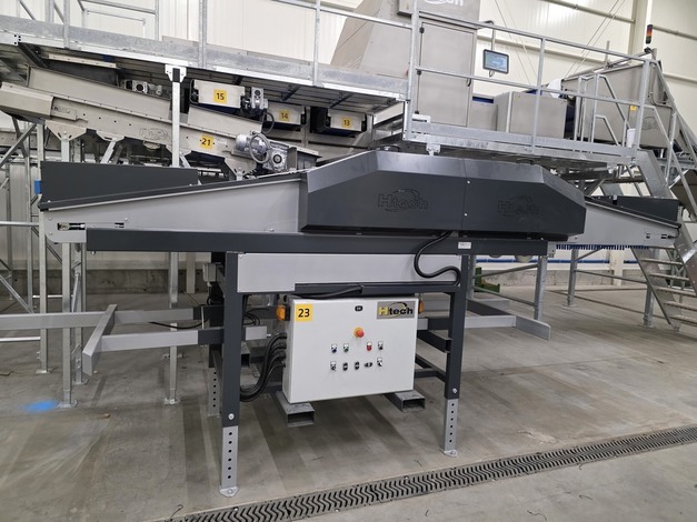 "Onze DBF (Dynamic Box Filling) machine is een geavanceerde oplossing voor het zacht en gelijkmatig vullen van palletboxen, rekening houdend met de kwetsbaarheid van de producten. De machine is uitgerust met hydraulisch verstelbare armen en geïntegreerde sensoren die zorgen voor een minimale valhoogte gedurende het gehele vulproces, zegt Tomáš Zdráhal, area sales manager van de Tsjechische machinefabrikant Htech cz s.r.o. "De vultechnologie handhaaft continu de laagst mogelijke valhoogte. Producten worden op een verplaatsbare transportband aangevoerd die ze zacht in de palletbox laat zakken. Zodra het product door een fotosensor wordt gedetecteerd, wordt de transportband automatisch opgehaald om schade te voorkomen. Het kunnen aanpassen van de valhoogte aan het einde van de sorteerlijn, wanneer palletboxen worden gevuld, is een betrouwbare manier om schade aan producten te verminderen."