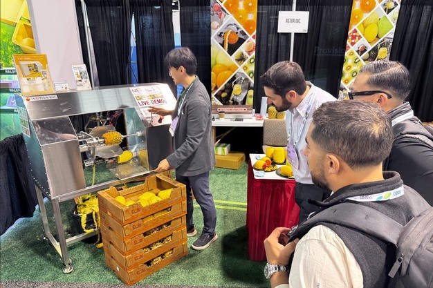 De Japanse machinefabrikant Astra heeft op de IFPA-beurs in oktober zijn nieuwste innovatie getoond: de FAP-3000, een industriële schilmachine die ananassen gelijktijdig kan schillen en ontkernen. Dit apparaat is ontwikkeld voor grootschalige verwerking en biedt verwerkers aanzienlijke tijdwinst en hogere efficiëntie.