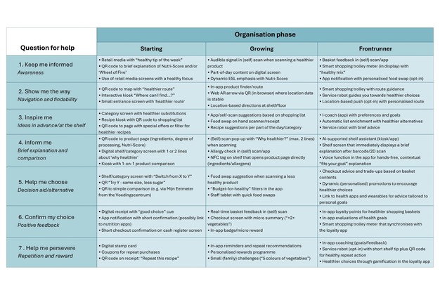 Een team van vertegenwoordigers van supermarkten, technologiebedrijven, de academische wereld en de voedingssector heeft onderzocht hoe technologie consumenten kan helpen bij gezondere keuzes in de winkel. Het resultaat is de In-store Technology Matrix, een praktische tool die supermarkten laat zien waar ze staan en welke stappen ze kunnen zetten om de gezonde keuze de makkelijke keuze te maken.