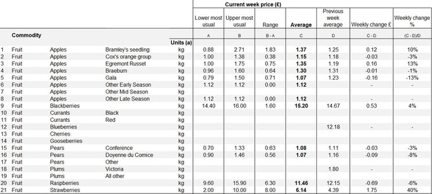 De Britse marktprijzen voor appelen en bessen laten deze week tegenstrijdige trends zien, volgens de meest recente groothandelsgegevens van Defra.