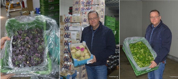 Drie hoogtepunten in het winterassortiment van Frey: van links naar rechts: Belgische Flower Sprouts, watermeloenradijs of 'Red Meat' van teeltbedrijf Stubenbordt in de Pfalz, en regionale veldsla.