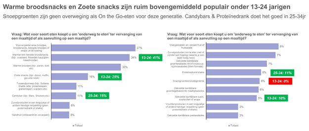 De consumptie van 'On the Go'-maaltijden stijgt sterk onder jonge Nederlanders. Volgens senior analyst Marten Suurmeijer blijkt dat vooral 13- tot 24-jarigen deze trend aanjagen. "Bijna 20% koopt minimaal 3 dagen per week een On the Go-maaltijd(vervanger). Het landelijke gemiddelde? Slechts 7%", schrijft hij op LinkedIn.