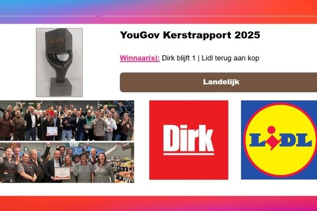 Dirk en Lidl delen de toppositie in het Kerstrapport van YouGov, waarbij beide ketens een score van 7,74 behaalden. Deze gedeelde eerste plek markeert een opmerkelijke prestatie, aldus Norman Buysse, verantwoordelijk onderzoeker bij YouGov: "Het is knap dat Dirk weer nummer 1 is, maar Lidl gaat er nog iets meer op vooruit."