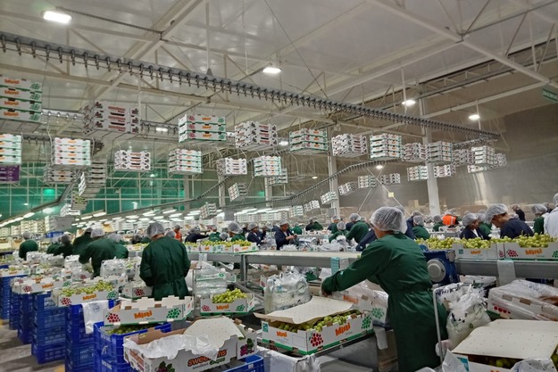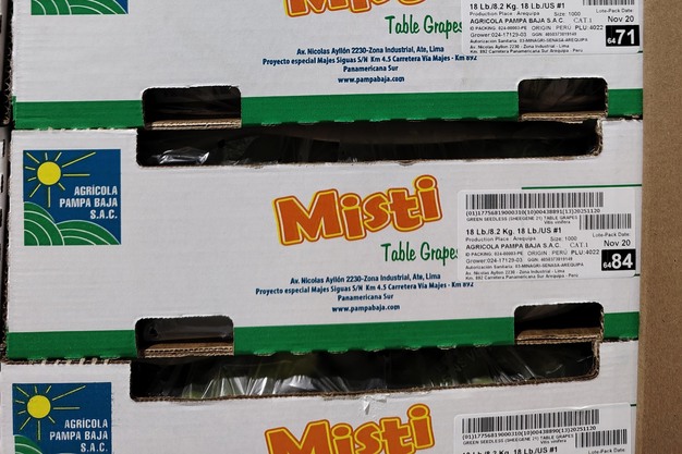 Ook druiven zijn een belangrijke pijler. De teelt vindt volledig plaats in Majes. Dit jaar mikt het bedrijf op zo'n 830 containers, goed voor circa 1,65 miljoen kartons. Alles wat ze telen is pitloos en onder licentie, met rassen zoals Allison, Timco, Autumncrisp, Ivory, Sweet Globe en Melody. Ongeveer 60% van de druiven is groen, 35% rood en 5% zwart. "We exporteren 75% naar de VS, de rest naar Europa en een klein deel naar Azië", zegt Robles.