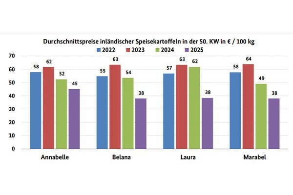 Het assortiment werd nog steeds gedomineerd door consumptieaardappelen. Er was een groot aantal variëteiten beschikbaar. Leveringen uit buurlanden vulden het assortiment aan, aldus het BLE. De kwaliteit was over het algemeen overtuigend. Alleen in Hamburg liet het binnenlandse ras Annabelle qua smaak te wensen over. De aanwezigheid van vroege tafelaardappelen breidde uit: Naast de Cypriotische Annabelle was ook de Italiaanse Sieglinde verkrijgbaar. Over het algemeen was de handel relatief rustig. Vraag en aanbod waren voldoende in evenwicht zodat er geen significante prijswijzigingen waren.