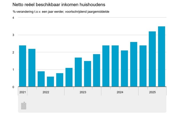 Beschikbaar inkomen Nederlandse huishoudens 3,5 procent hoger in derde kwartaal