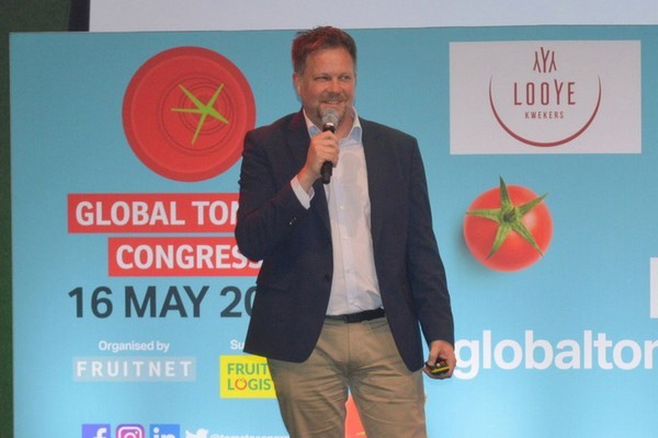 Christian Zeiler op het podium tijdens het Tomatencongres 2023.