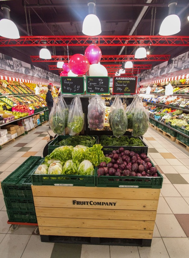 De koeling is flink uitgebreid, met salades, maaltijden, kipspiezen, runderlapjes, voorgesneden groenten en wraps. Er is een aardappelwand en naast een 8 meter lange 3-laags groentestelling een extra groenteblok.