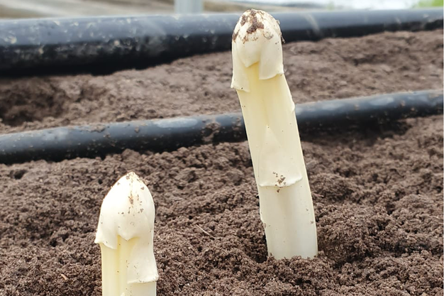 Hoewel de afgelopen weken koud waren, heeft dat de teelt niet geschaad. "Dankzij ons ondergrondse verwarmingssysteem hebben we geen last gehad van de vorst. Bovendien stond de vegetatie er dit najaar erg goed bij, wat heeft gezorgd voor voldoende reserves en dus ook de mooie dikke asperges die we nu zien."