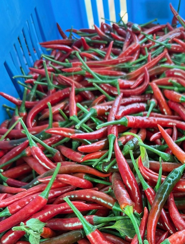De bird's eye chili — een pittige Thaise hybride — wordt zowel groen (mild) als rood (heet) geoogst. De rode pepers rijpen verder tijdens het transport naar Europa. Klasse II wordt gedroogd en geëxporteerd naar specerijproducenten in onder andere China, India en Zuid-Afrika. Dankzij het tropische hooglandklimaat kan Kinvest het hele jaar door leveren, met nauwelijks seizoensverschillen.