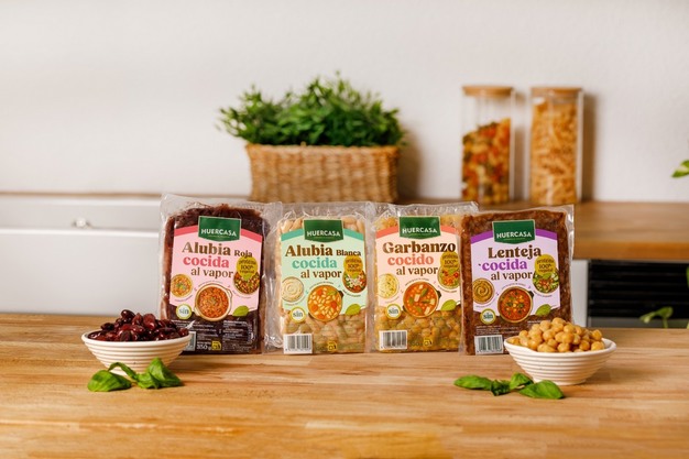 Daarnaast werkt Huercasa aan vernieuwing in het schap. Een van de belangrijkste innovaties is het assortiment peulvruchten: gestoomde bonen, kikkererwten en linzen, direct klaar voor consumptie, zonder afspoelen of uitlekken. Deze producten zijn volledig vrij van conserveermiddelen of toevoegingen, met meer smaak en in een nieuw compact, duurzaam en vloeistofvrij verpakkingsconcept.