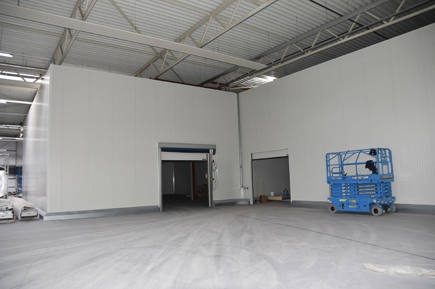 De koelcellen zijn geplaatst en de deuren gemonteerd. Vorige week zijn de compressorunit en de gaskoeler op het dak geplaatst.