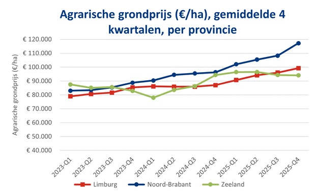Grondprijsontwikkeling Zeeland, Noord-Brabant en Limburg
