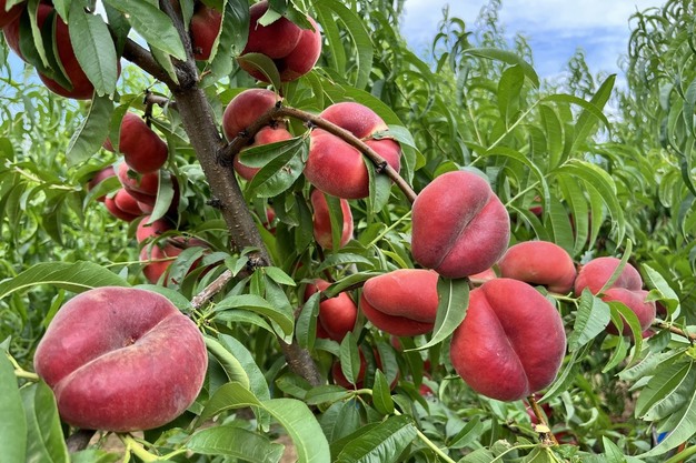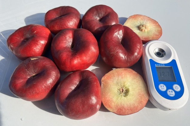 © PSB Producción VegetalMaryloo EP001-9, een platte nectarine met wit vruchtvlees, geplukt in Lérida op 1 juli 2025