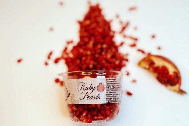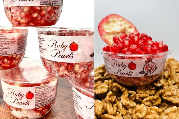 De granaatappelpitten worden onder meer vermarkt onder de bekende merknaam Ruby Pearls.