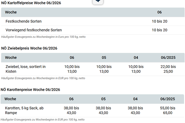In de week van de voorjaarsvakantie in Oost-Oostenrijk zet de wortelmarkt in Neder-Oostenrijk de ontwikkeling van de afgelopen weken voort. De afzet via de binnenlandse foodretail verloopt stabiel en op een bevredigend niveau. Exporten vinden nog steeds plaats in beperkte volumes en tegen stabiele condities. Ook prijstechnisch zijn er geen wijzigingen ten opzichte van de voorgaande weken. Aan het begin van de week werd voor wortelen in 5-kg-verpakking, af helling, afhankelijk van de kwaliteit doorgaans €38 tot €43 per 100 kilo betaald.