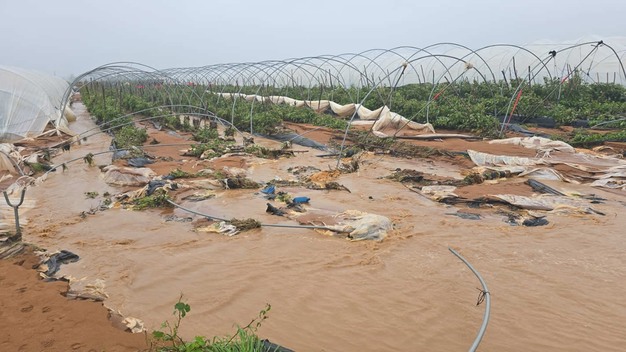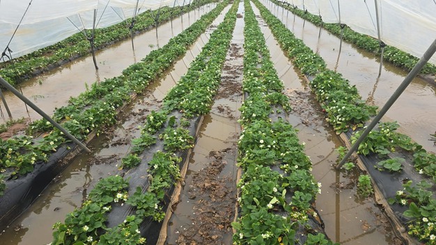 "Het heeft in Huelva, maar ook in Portugal heel veel geregend. Door de windschade en het koude, vochtige weer zijn er grote problemen ontstaan. Als de wind onder de frambozentunnels komt, waait alles kapot. En de aardbeien die dichtbij de grond staan, krijgen zoveel water over zich heen, dat kunnen ze niet aan. Er zijn behoorlijk wat percelen die afgeschreven kunnen worden", vertelt de teler.