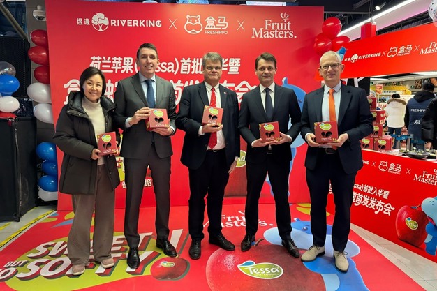 Na de aankomst van de eerste container Nederlandse Tessa-appels in China vond afgelopen weekend in Beijing een officiële welkomstceremonie plaats in aanwezigheid van de Nederlandse ambassade, FruitMasters, de Chinese importeur en retailpartner. De ceremonie markeert een historische mijlpaal in de introductie van de Tessa-appel op de Chinese markt en onderstreept het belang van deze ontwikkeling voor de handelsrelatie tussen Nederland en China.