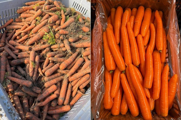 Niet alleen op het land, maar ook na de oogst wordt streng gecontroleerd. Alles wordt nauwkeurig gewassen, geselecteerd, verpakt en opgeslagen bij gecontroleerde temperatuur. Alleen wortelen die aan alle eisen voldoen, gaan in kratten van 10 kilo naar de markt. "We leveren een product waar geen concessies aan worden gedaan. Gezond en betrouwbaar."