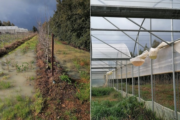 "De folies van de tunnels die we gebruiken voor het voorjaar zijn losgescheurd. Door de aanhoudende regen, met hooguit een paar uur pauze, zijn de paden onbegaanbaar en het werk op het bedrijf ontregeld. Snoeien en gewasbescherming lopen achter", zegt Marras. "In de proefboomgaard met appelen zijn enkele rijen door de harde wind platgegaan. De artisjokvelden zijn eigenlijk verloren. Niet alleen nu, ook de kwaliteit van plantmateriaal voor volgend seizoen staat op het spel."