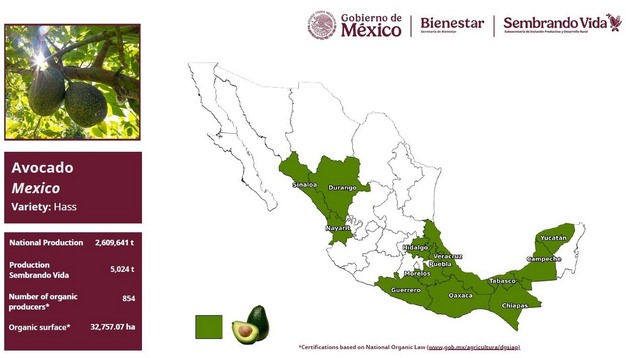 Mexico blijft wereldwijd koploper in Hass avocado's, met een opbrengst van rond de 2,6 miljoen ton per jaar. Grote volumes worden geteeld door grote bedrijven in traditionele exportstaten zoals Michoacán. De Mexicaanse overheid wil nu ook kleinschalige telers laten aanhaken op de internationale handel via het programma Sembrando Vida.