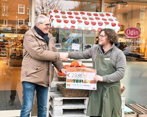 29 voedselbanken in Nederland kregen onlangs €37.801 van de Odin-winkel bij hen in de buurt, voor verse biologische groenten en fruit voor hun klanten. Dit is maar liefst €20.000 meer dan vorig jaar, toen deze actie voor het eerst werd gehouden. Het bedrag is tijdens de feestdagen eind vorig jaar gedoneerd door klanten van biologische coöperatie Odin.