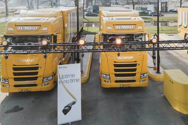 Jumbo Supermarkten en Scania Nederland zetten hun samenwerking op het gebied van duurzame logistiek voort. De voertuigfabrikant levert veertien elektrische vrachtwagens aan de retailer en verzorgt via dochterbedrijf Erinion tevens de laadinfrastructuur bij het distributiecentrum in Woerden.