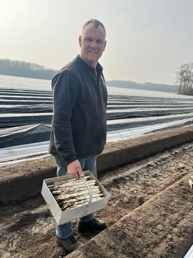 © Brabants AspergenootschapOp 7 maart zijn in Brabant de eerste asperges van de koude grond van dit seizoen gestoken. Aspergekwekerij de Wit uit Mariaheide, onder leiding van Marc en Sandra de Wit, was dit jaar de eerste producent die de oogst rapporteerde, meldt het Brabants Aspergenootschap. Hiermee is het aspergeseizoen in Brabant officieel van start gegaan.