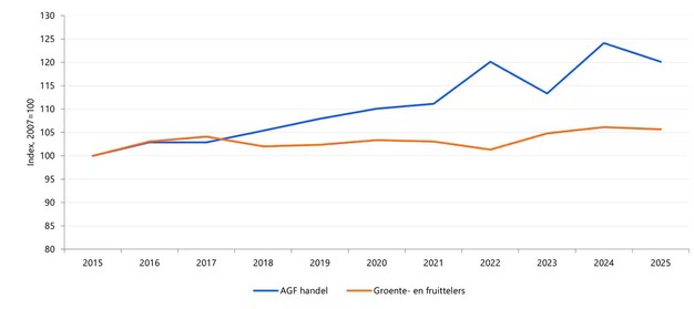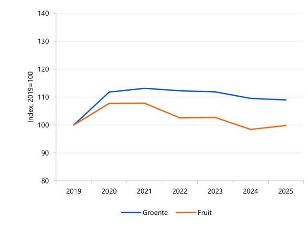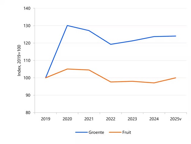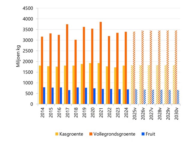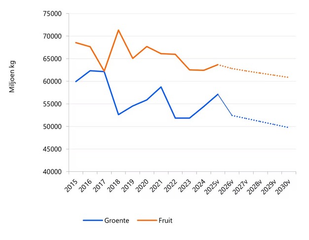 Figuur 6: Productie van groente en fruit in Nederland stagneert