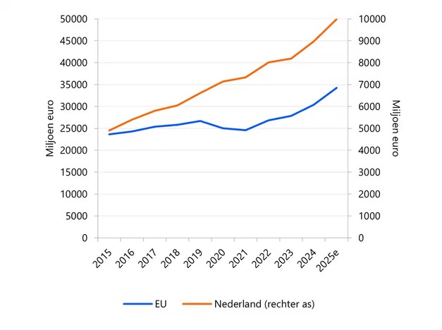 Figuur 2: Importvolume van groente en fruit door Nederland steeg harder dan van EU totaal