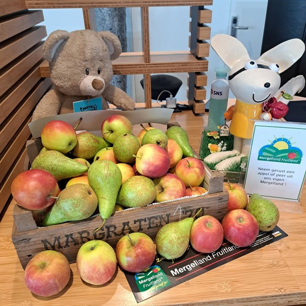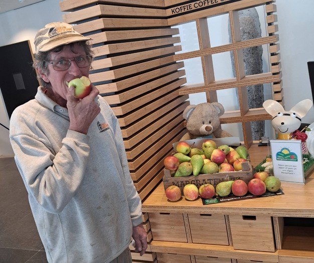 Iedere dag breng ik namens de fruittelers van onze gemeente Eijsden/Margraten fruit naar het gemeentehuis voor bezoekers en personeel.